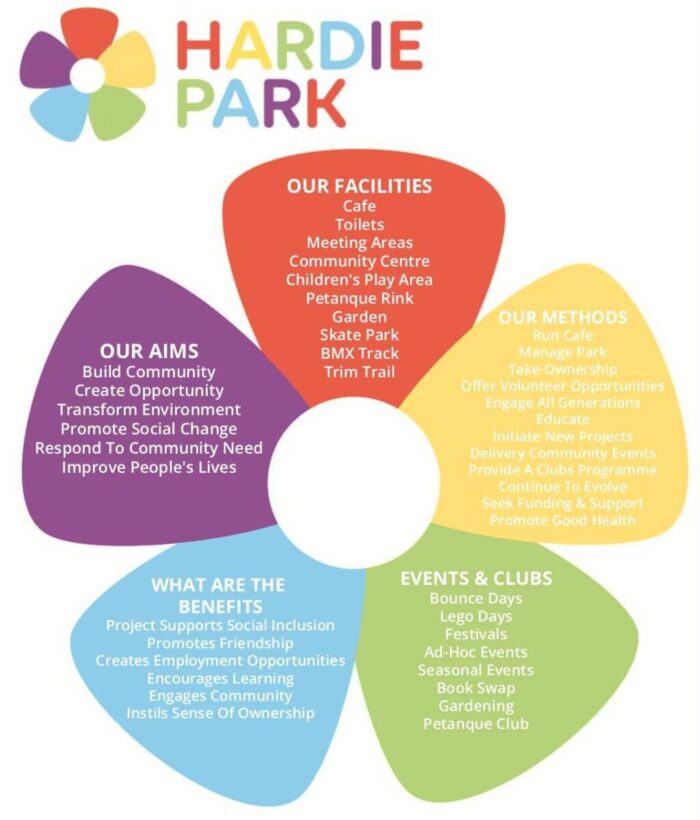 Hardie Park is a community led family park and open green space. Local residents took ownership after a period of neglect with the guidance of local resident Rob Groves in order to develop and enhance the area for the benefit of the local community.